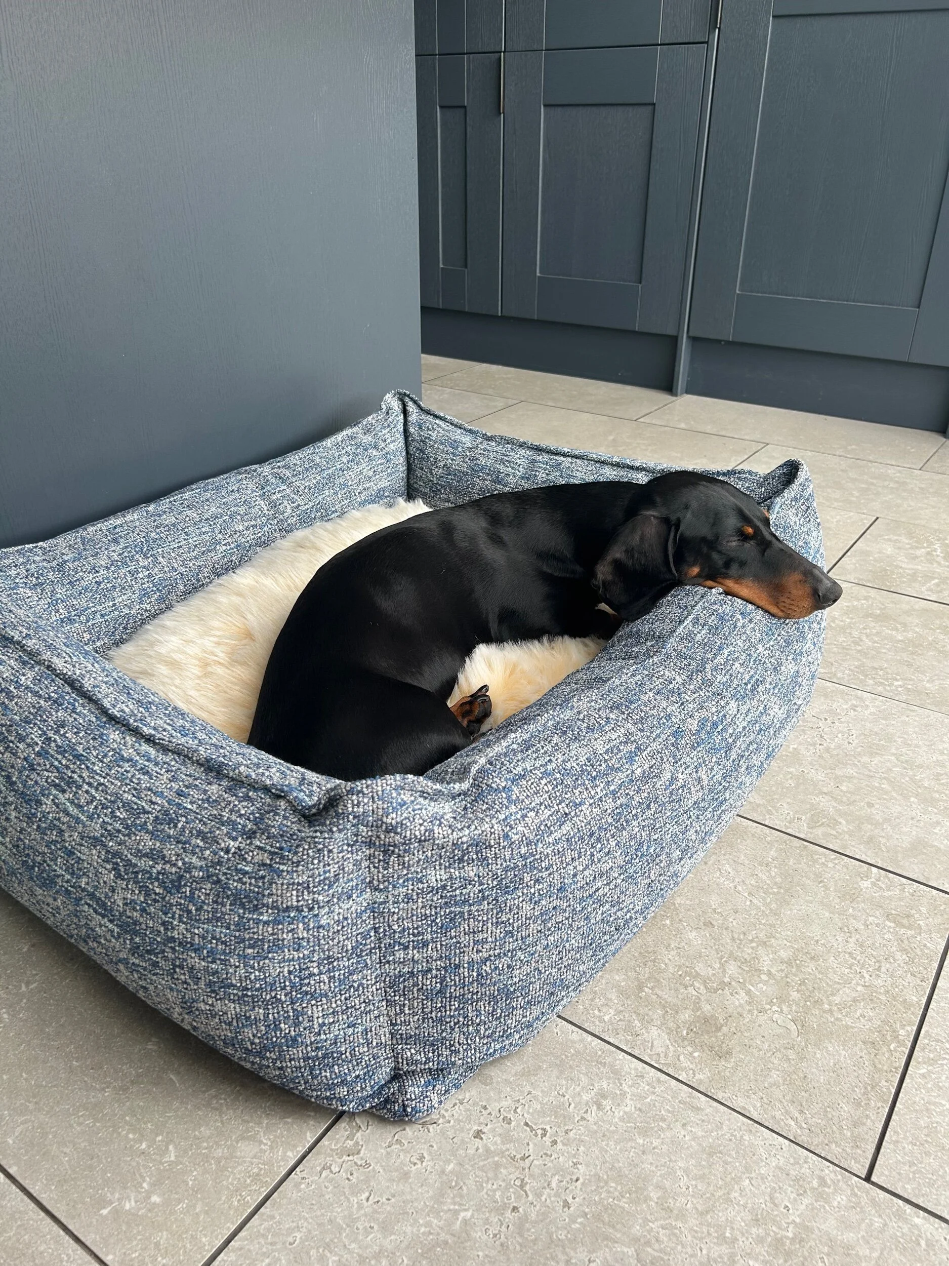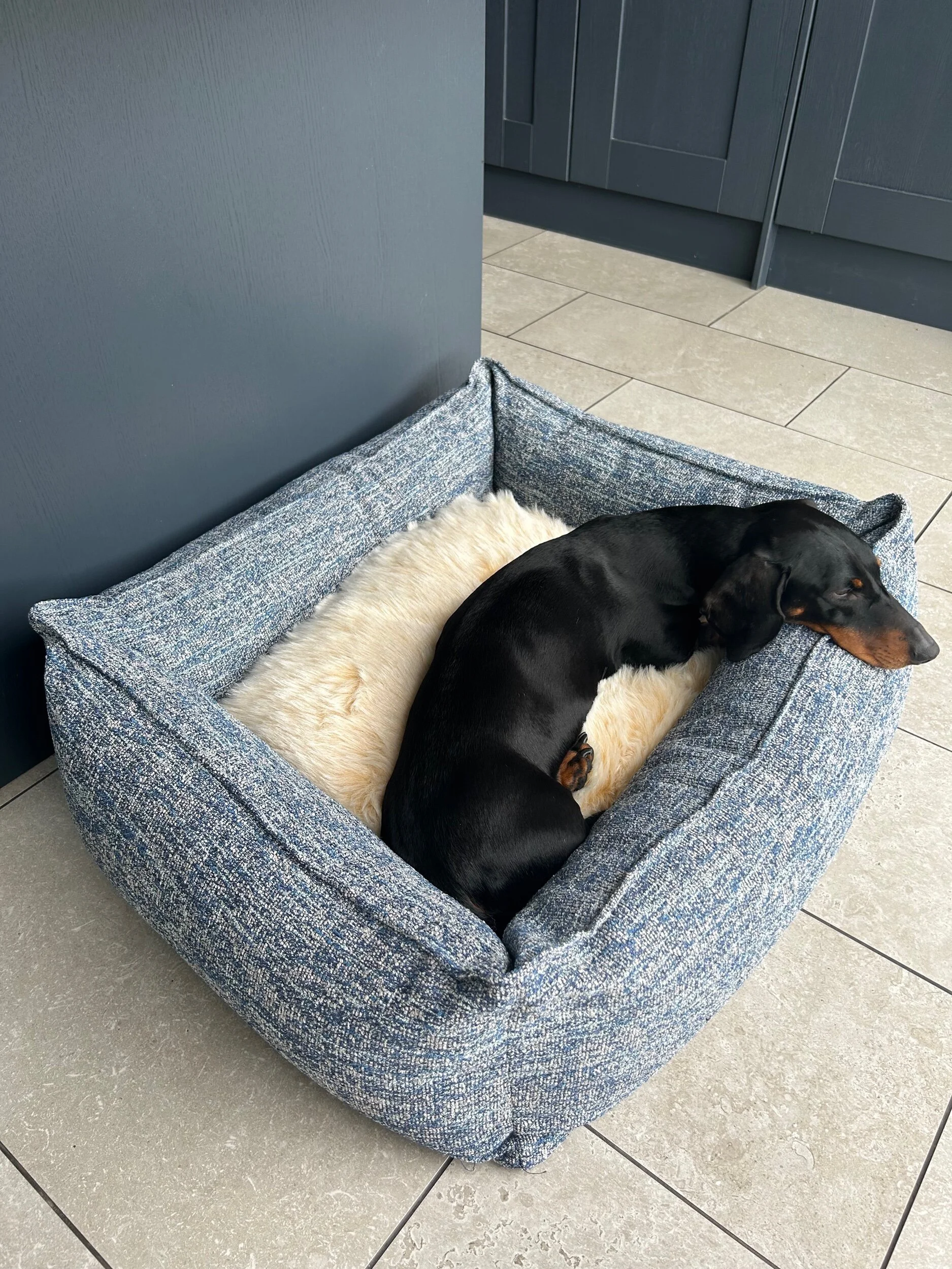 Introducing our brand new Revival Box Beds, a gorgeous multi tonal Boucle fabric which is our most hardwearing. We are delighted to have created a style that now all breeds can enjoy all year round. Our concept remains the same with you selecting the fur choices from the drop down menus and images of all the different options can be seen in the photo Gallery. The new box beds are super soft to touch using our most popular fabrics sourced from UK Suppliers and Manufacturers, and all of our fabrics have been chosen and designed by Lauren.
